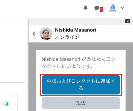 「承認およびコンタクトに追加する」をクリックし、講師をコンタクトに追加します。